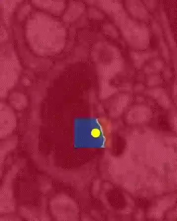 分割对象的泛洪填充网络。黄点是当前焦点区域的中心; 当算法不断检查整个图像时,分割区域会不断扩展(蓝色)。