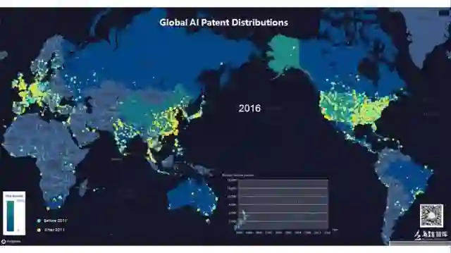 观察1980年与2016年的全球AI专利分布图,我们可以发现美国、中国、欧洲俨然为专利大户,与企业分布地图所展现的一样,在这些领域内,工业界的大规模迸发,激发了人们对于AI科技的探索。