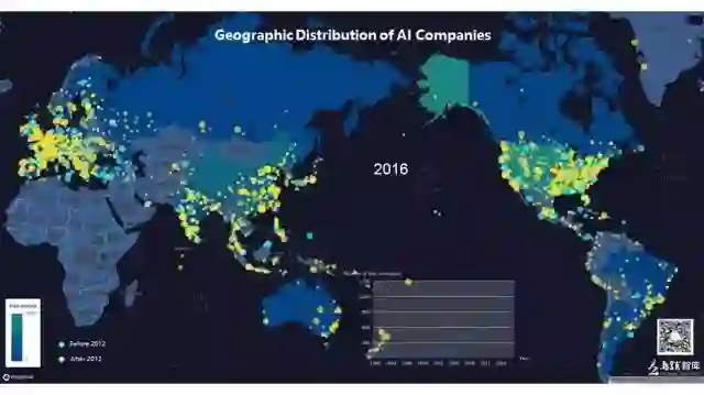 情况到了2016年,有了颠覆性的变化,人工智能迎来井喷式增长,欧洲地区与美国的企业分布地图被黄点覆盖,其中2011年前建立的AI企业也有相当数量。而此时的中国同样具有了不俗的规模,在沿海地区大量增加的AI企业形成了规模化的集群,共同促进地区发展,中国有着自己的一派发展规律。