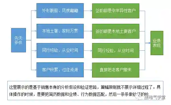 找魔法数据的本质,是找到驱动用户/业务的关键因素。因此想解开头的题目,得先弄清楚:为啥有的销售好,有的销售差。