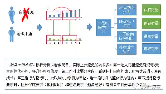 所以分析行为的时候,不要拿每一个指标与结果做交叉,而是先找到标杆,再拆解标杆的行为,总结出一些规律,再拿着标杆的行为与普通人做对比。这样才更容易看到差距,找到一套可复制的打法(如下图):