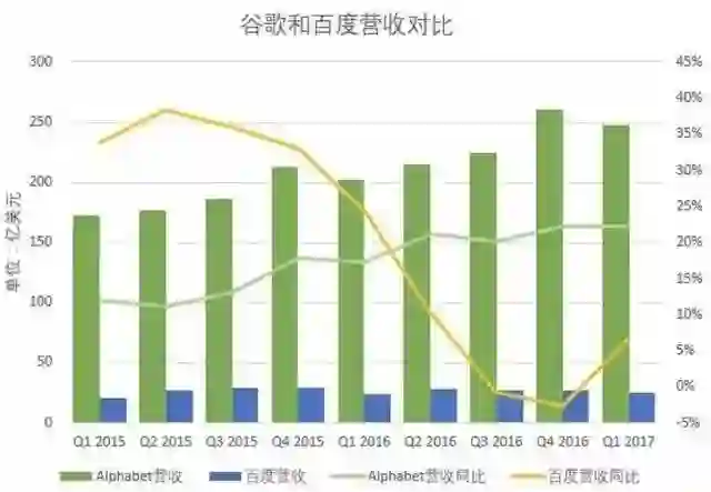 而从两家公司Q1季度财报也可以看出它们的不同发展轨迹。Google母公司Alphabet当季营收247.5亿美元,远超华尔街分析师242.2亿美元的预测,较去年同期增长22%,净利润涨幅29%。Alphabet的市值更是在财报发布后到达历史新高度。