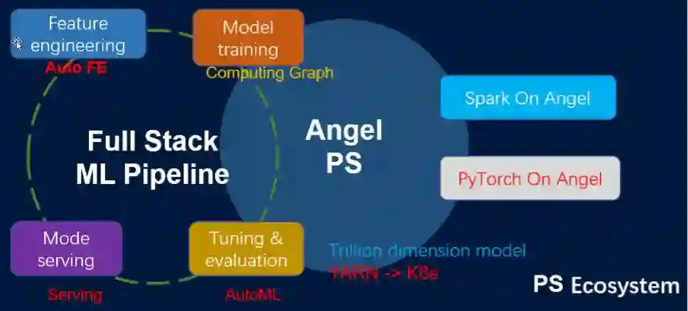 Angel在基金会的孵化过程中获得了快速发展,并完成了从2.0版本到3.0版本的跨越,从一个单纯的模型训练系统进化成包含从自动特征工程到模型服务的全栈机器学习平台。