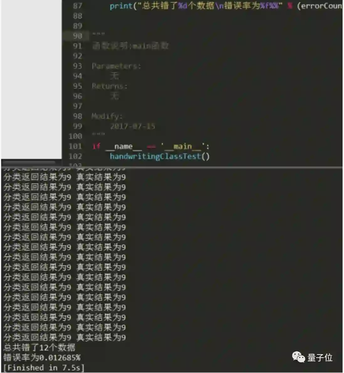 这里不再讲解自己用Python写的k-邻域分类器的方法,因为这不是本小节的重点。接下来,我们将使用强大的第三方Python科学计算库Sklearn构建手写数字系统。
