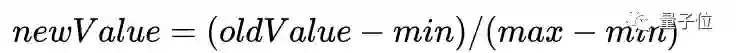 在处理这种不同取值范围的特征值时,我们通常采用的方法是将数值归一化,如将取值范围处理为0到1或者-1到1之间。下面的公式可以将任意取值范围的特征值转化为0到1区间内的值: