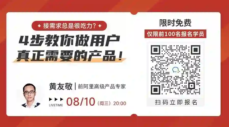 8月10日(周三)晚上8点!拥有18年互联网产品策划与管理经验的@黄友敬老师在线直播,4步教你做用户真正需要的产品: