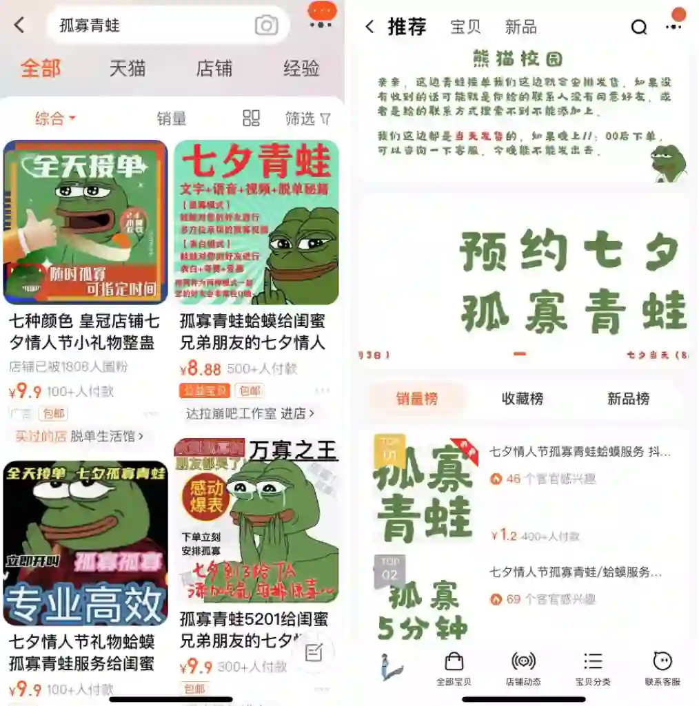 淘宝上的孤寡青蛙店铺 来源 / 淘宝截图