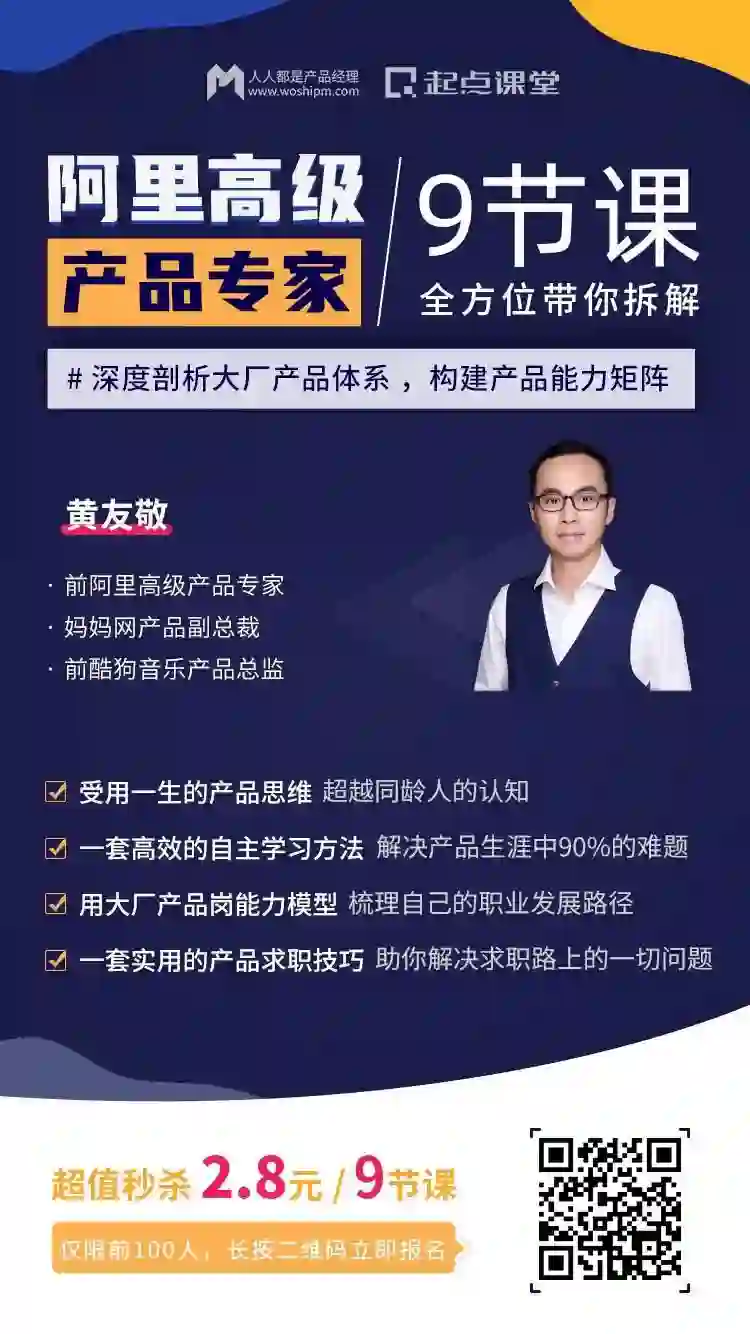 课程的购买二维码就在下面啦~每门课不要99,只要2.8元,大厂产品/运营专家“带回家”!扫码报名即可直接学习~