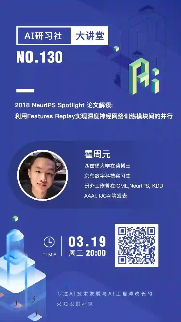 反向传播算法是深度学习优化中计算梯度的有效方法。然而随着网络层数逐渐增加,梯度在网络间的序列传播 (backward locking) 成为加速深度学习模型训练的重要瓶颈。本次分享中,讲者将介绍如何利用历史特征信息,实现深度网络模块间的并行计算。