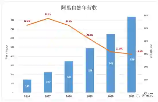 然而,作为达摩院背后的倚靠,阿里的营收增速在近几年却逐渐放缓。