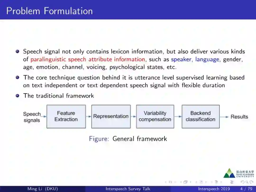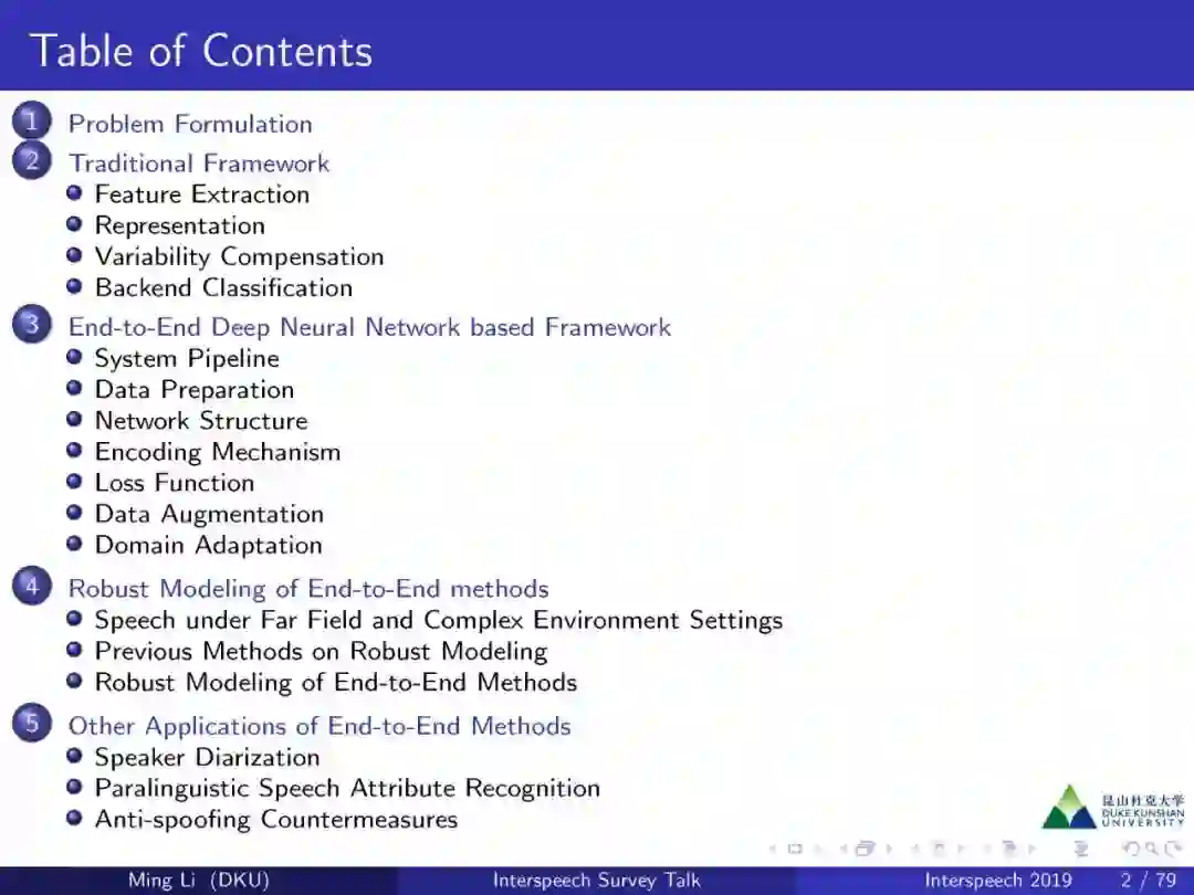 【导读】InterSpeech 是语音处理领域的顶级会议,于9月15日-- 9月20日在奥地利格拉茨召开,昆山杜克大学李明博士在会上作了题为“End-to-end deep neural network-based speaker and language recognition”的报告,本文整理了报告的主要内容,并分享了报告163页PPT,非常值得学习。