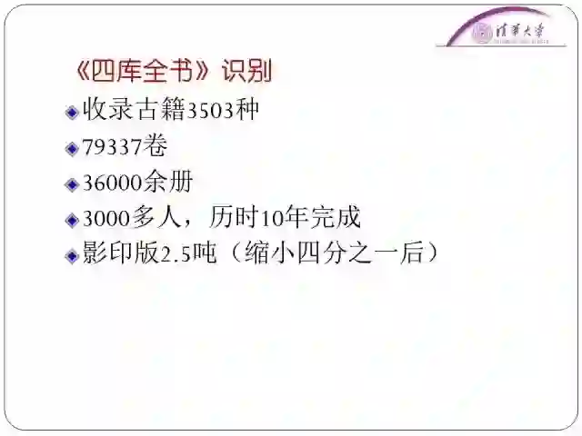 这个《四库全书》是当年三千多人一起抄写了十年才完成的。现存的完整版分别保存在国图和台北。但是要查询《四库全书》的内容就非常难了,当时台湾出版过影印版,整体缩小四分之一,最后一套书的重量有两吨半。因此很多人想出版成电子版。90年代的时候很多公司抢着想做这件事情。甚至还有公司在人民大会堂抢先开了新闻发布会,当然他们最后也没做成。这些人都想找人采用人工录入的方式,但是都没有成功。