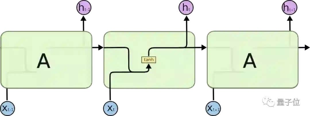 在标准的 RNN 中,这个重复的模块只有一个非常简单的结构,例如一个 tanh 层。