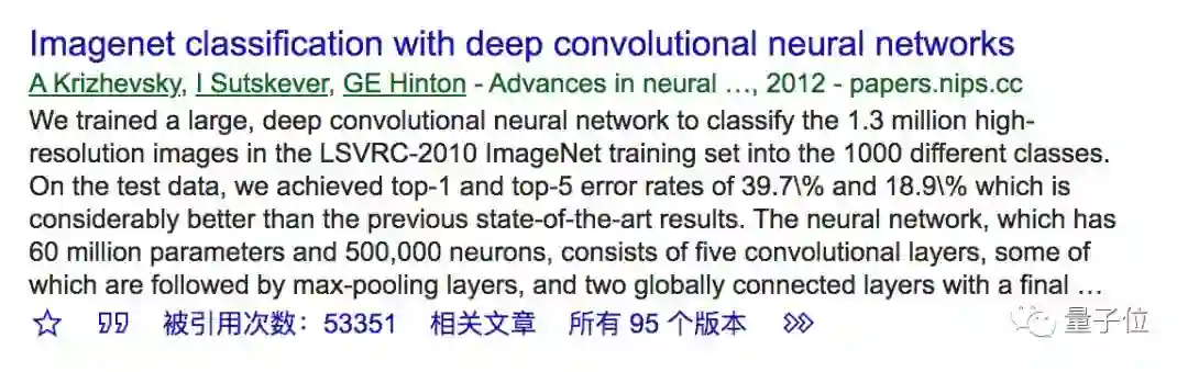 Hinton等大佬发在NeurIPS 2012上的Imagenet classification with deep convolutional neural networks,引用超过53000。