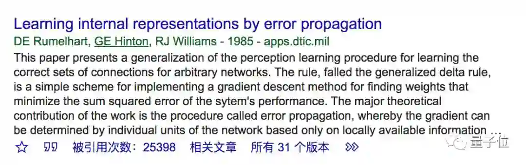 如果只算一年,比如马上结束的2019年,根据Google Scholar的结果,DE Rumelhart、GE Hinton、RJ Williams三人组的两篇反向传播论文,今年一整年的引用量加起来足足有3085次。