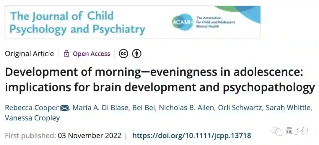 该篇论文发表在儿科医学SCI期刊《Journal of Child Psychology and Psychiatry》上。