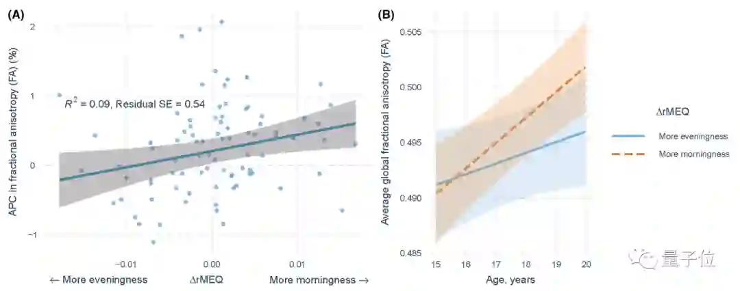 除此之外,实验还首次记录了睡眠偏好如何影响青少年大脑白质的增长:经常熬夜的孩子的白质并没有像早睡早起的孩子一样增加。