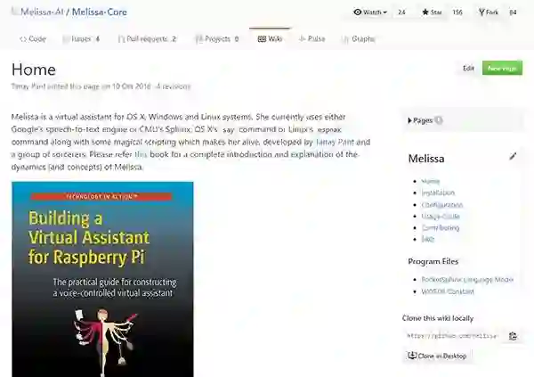 Melissa 始终保持语音控制,并提供各式各样的开箱即用对话框,包括做笔记、谈星座、获取维基百科的定义、播放音乐等等。 对于想要完全控制的 Python 开发人员而言,Melissa 可能就是为你量身定做!要了解更多信息并获取有关如何构建的详细信息,主开发人员 Tanay Pant 有一本更加详细介绍 Melissa 的完整书籍,它已经被当作 Melissa 的详细文档。