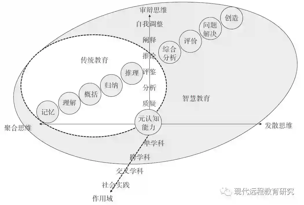 (2)智慧教育中学生的思维包含基本的思维技能,如记忆、理解、概括、归纳、推理,也包含更高水平的思维技能,如综合分析、评价、问题解决、创造等。