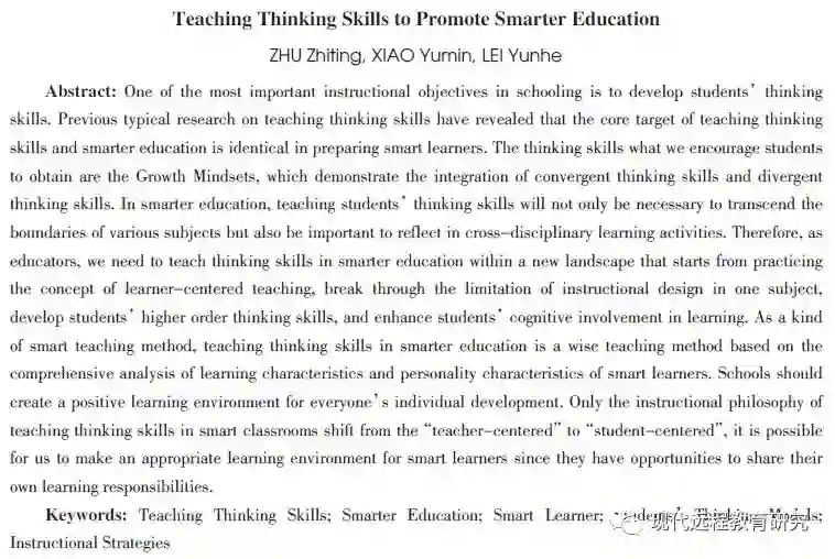 关键词:思维教学;智慧教育;智慧学习者;学生思维模型;教学策略