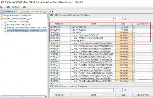 通过补丁对比,发现官方最新的nssock2.dll移除了以下几个函数,所以后门代码应该就存在于这几个函数中