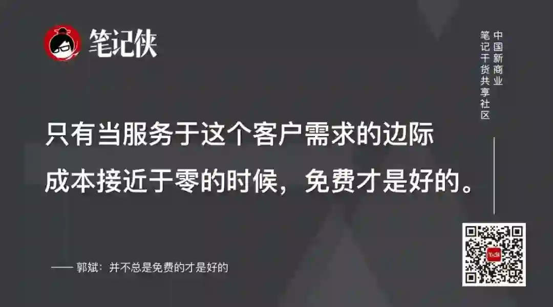但如果边际成本不能忽略,必要时候,象征性收取部分服务费,也是为了能够把无效客户给剥离出去,从而降低获客成本。