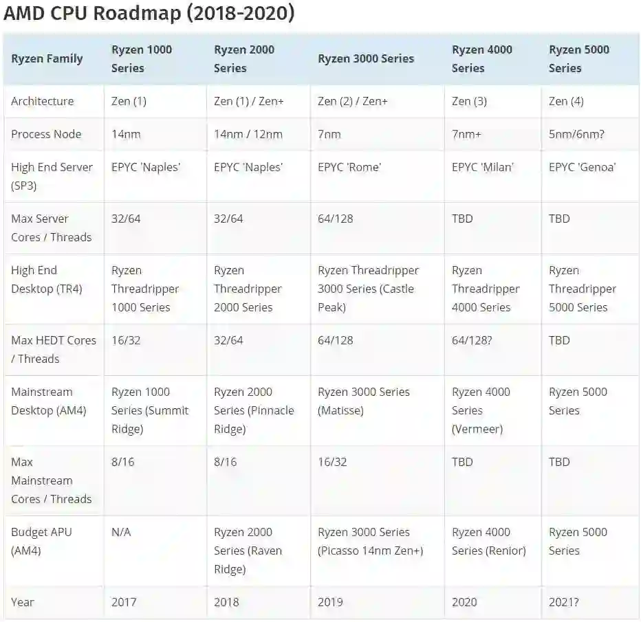 最近,AMD 也发布了自己到 2020 年的 CPU 产品 Ryzen 系列(锐龙)以及 Threadripper(锐龙 Threadripper,「线程撕裂者」)的发布计划和市场定位。