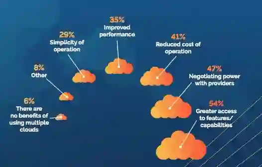 多云不仅是一种理念,现在已经是常用实践了。三分之二的受访者已经在采用多云策略。采用多云的原因有:能使用更好的功能,增加和云供应商的谈判资本,降低运营成本,提高性能等。