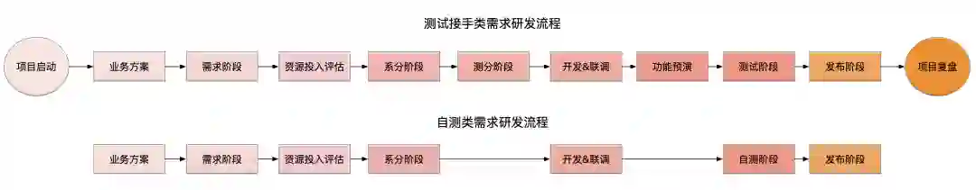 ICBU 跨境资金-国际结算团队是 ICBU 质量标准化实践的样板间,我们团队在研发流程各个环节都有严格的质量规范。国际结算团队承接的业务多且复杂,特别是涉及到资金的需求交付,我们都是非常谨慎的。在国际结算团队,一个需求从提出到上线,对于测试接手类的重要需求需要经历如下环节: