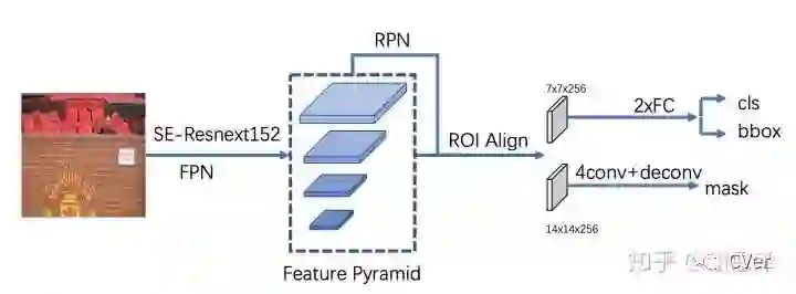 本文方法是 base 在 Mask R-CNN 之上,网络整体流程如下: