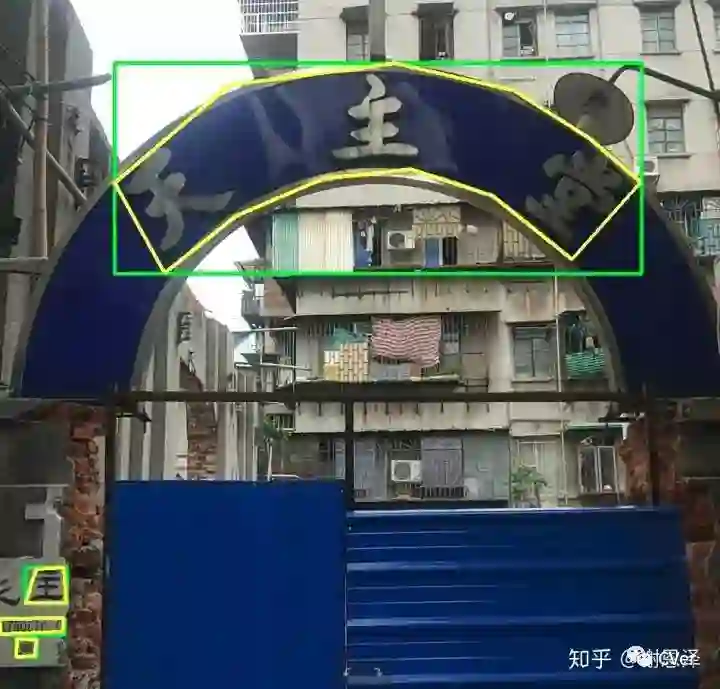 再比如一些图像因为拍摄视角的原因可能会导致文字本身的检测变得非常困难,尝试采取 affine变换也不能很好地解决等等问题。