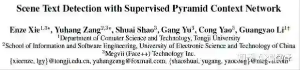 [7]E.Xie,Y.Zang,S.Shao,G.Yu,C.Yao,andG.Li.Scenetext detection with supervised pyramid context network. arXiv preprint arXiv:1811.08605, 2018.