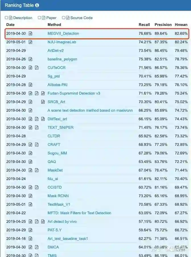 旷视检测组的几名实习生参加了本次比赛,这个部分主要分享一些旷视检测组在 ICDAR2019 ArT 比赛中获得冠军的一些经验。