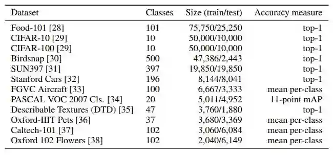 表 1: 在迁移学习中被检验的数据集。