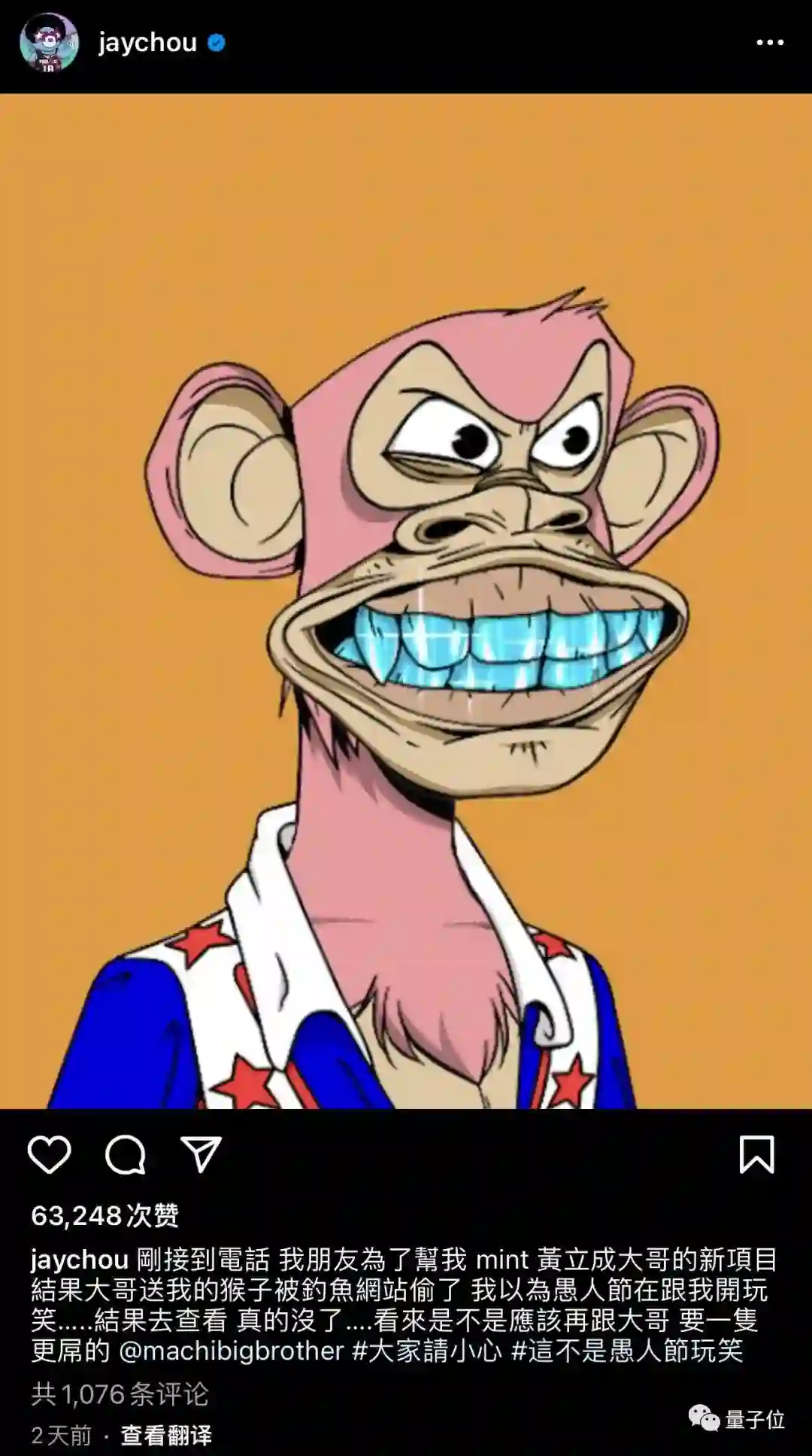 愚人节当天,周董称自己的NFT被盗。还特意强调,这并不是玩笑。