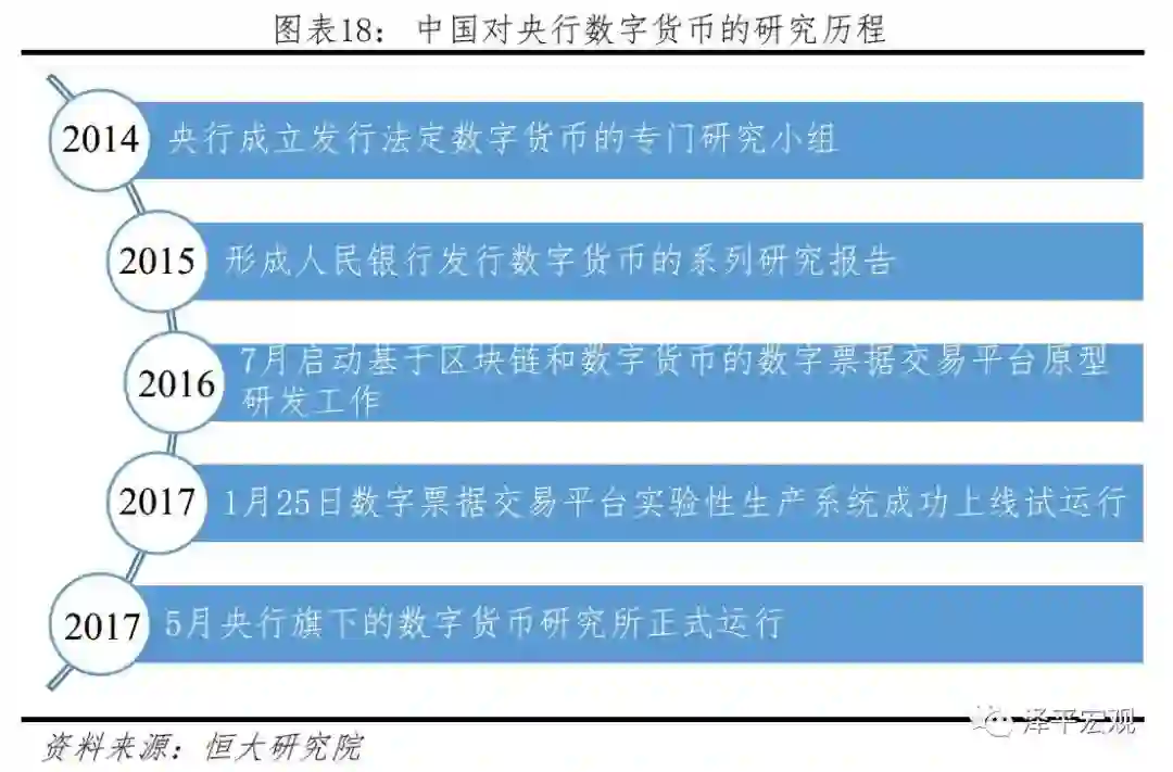 中国在法定数字货币的研发上起步较早,发展较快。下图是中国对央行数字货币的研究历程。