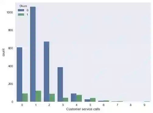 也许汇总表不是很明显,但图形很明显地显示了,从4次客户呼叫开始,离网率显著提升了。