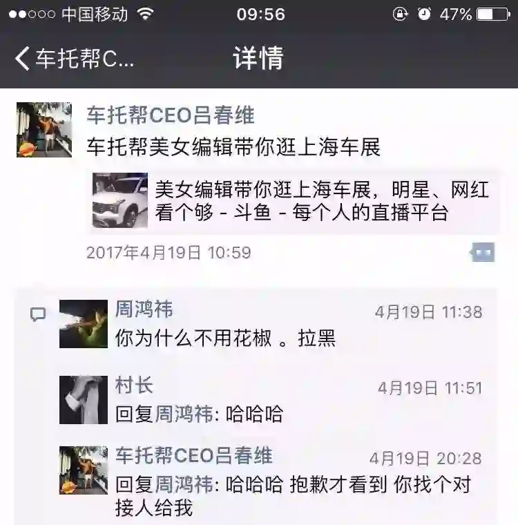 比如找王思聪、姚晨、周鸿祎、张小龙等人的微信,我花了3-5分钟不等;