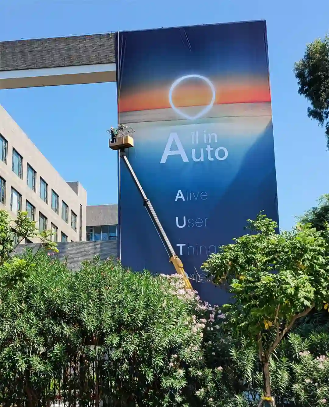 另外,魅族科技大楼目前也悄然挂上了新海报,slogan 为“all in auto!”,可以理解为魅族将全面进军汽车领域。作为魅族科技的大股东,吉利汽车大概率会开进到魅族旗舰店。
