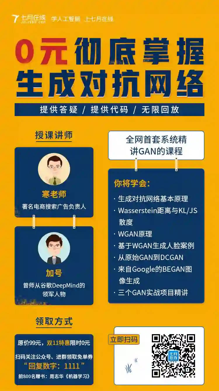 【狂欢11.11】第一波福利已上线「生成对抗网络」限时免费送