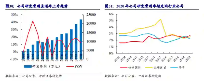 近年来领先于同行的费用投入力度为特步的产品研发提供有力支撑。特步的研