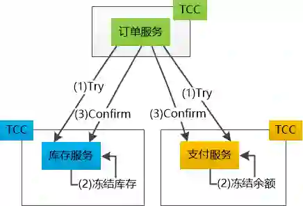 Bill说道。 “我们把这套机制叫做 Try - Confirm -Cancel,简称TCC。对于每个每个微服务来讲,都要提供try , confirm , cancel这三个接口。” Bill接着说,“另外每个微服务也得有一个专门用来管理TCC的组件。”