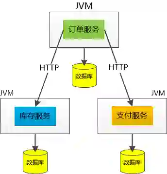在原来的单体应用中,订单模块想要调用库存和支付,只要调用相关的类或者接口就可以了,只有一个数据库,轻轻松松就可以把所有操作放到一个事务当中,保证不会出现扣了库存但是支付失败的情况。