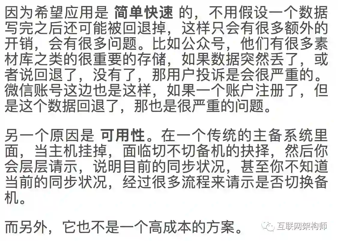 首先,我们需要敏捷开发。过去几年,微信都是很敏捷地在开发一些业务。所以我们的底层架构需要支撑业务的快速发展,会有一些特殊的需求。