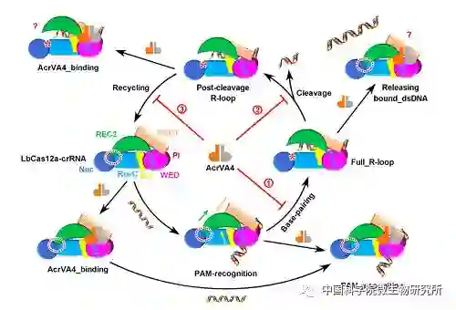 与其他已知Acr蛋白的单一抑制机制不同,AcrVA4能够在反应过程中的多个步骤影响Cas12a发挥活性。