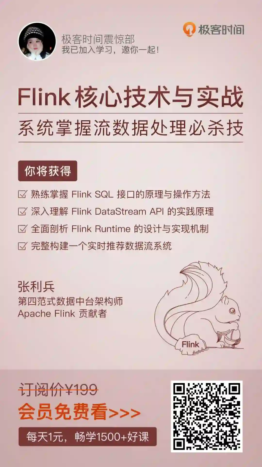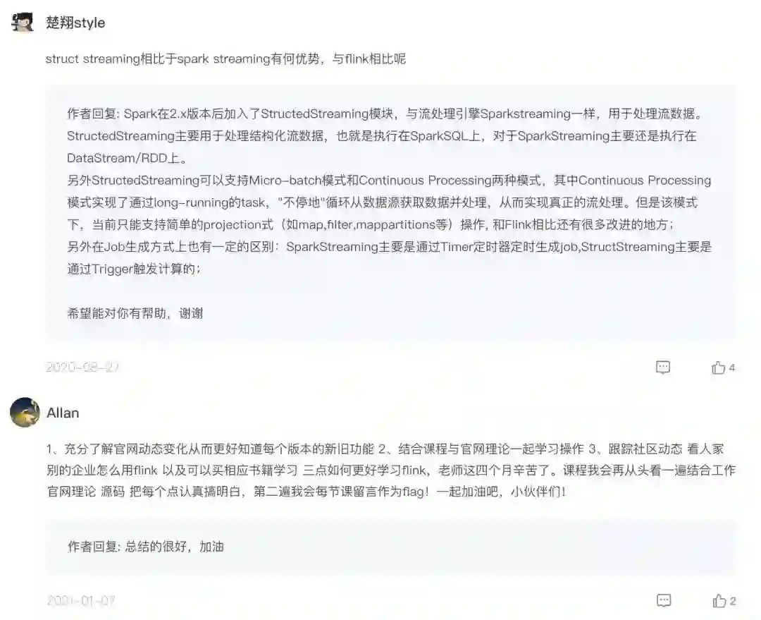 这些张利兵在课程中都有一一讲解,值得一提的是:课程基于 Flink 最新 1.11.1 版本讲解,通过原理解读和实战练习,带你掌握 Flink 在实时开发过程中所涉及到的全部核心技术。
