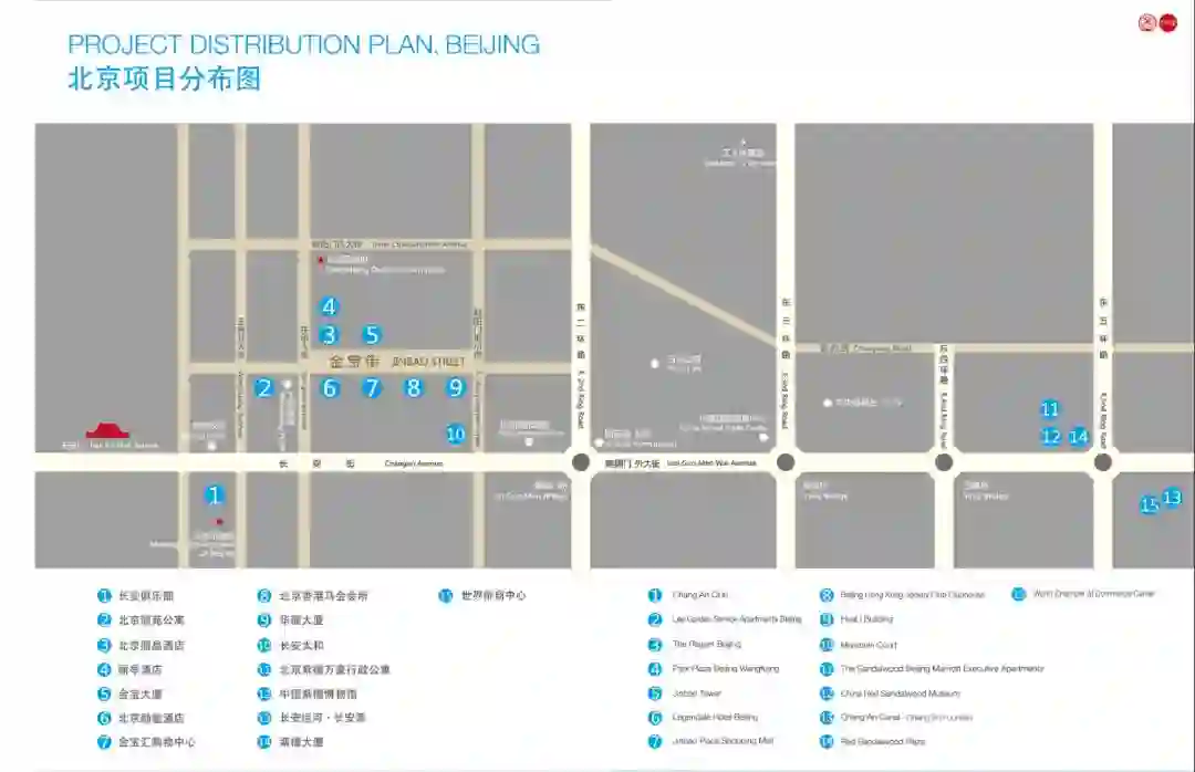 金宝街上,财富如流。街两旁包括八个地块,覆盖豪华酒店、甲级写字楼,北京香港马会会所、金宝汇购物中心、豪华公寓等高端商业物业。金宝汇购物中心汇聚了GUCCI、Bottega Veneta、VERTU等众多国际品牌。法拉利、马莎拉蒂、阿斯顿·马丁、奔驰、陆虎、捷豹等豪华汽车品牌展厅也均有一席之地。