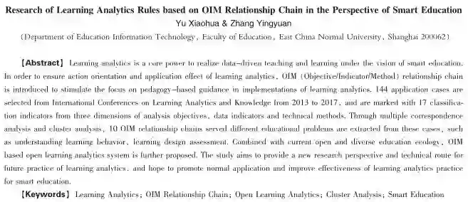 关键词:学习分析;OIM关系链;开放学习分析;聚类分析;智慧教育