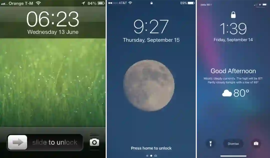 iOS 5、iOS 10 、iOS 12 的锁屏页面