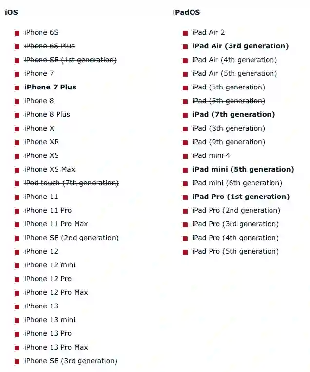 iOS 的设备支持一直是用户们比较关心的一个问题。按照 iOS 13、iOS 14、iOS 15 的情况,Apple 放弃了所有内存小于 2GB 的设备。如果 iOS 16 运行的最低限制为 3GB 内存,那么 iPhone 7 系列、iPod Touch 第七代、iPad Air 第三代等就可能会被移出支持列表。